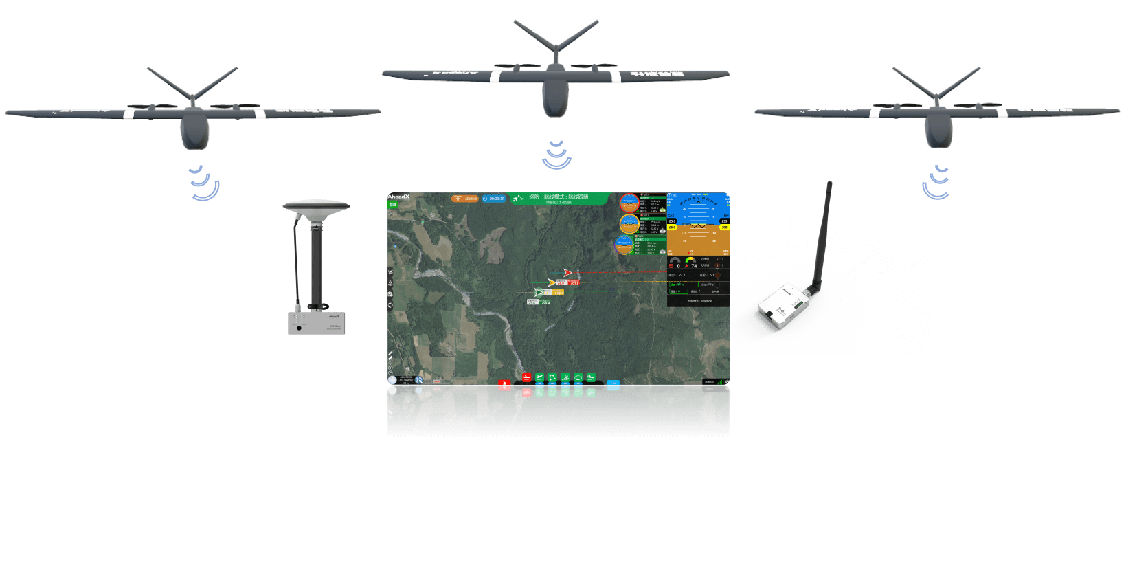 Space V3 Pro 一站控多机,实现大规模 无人机测绘、无人机 集群编队等功能。
